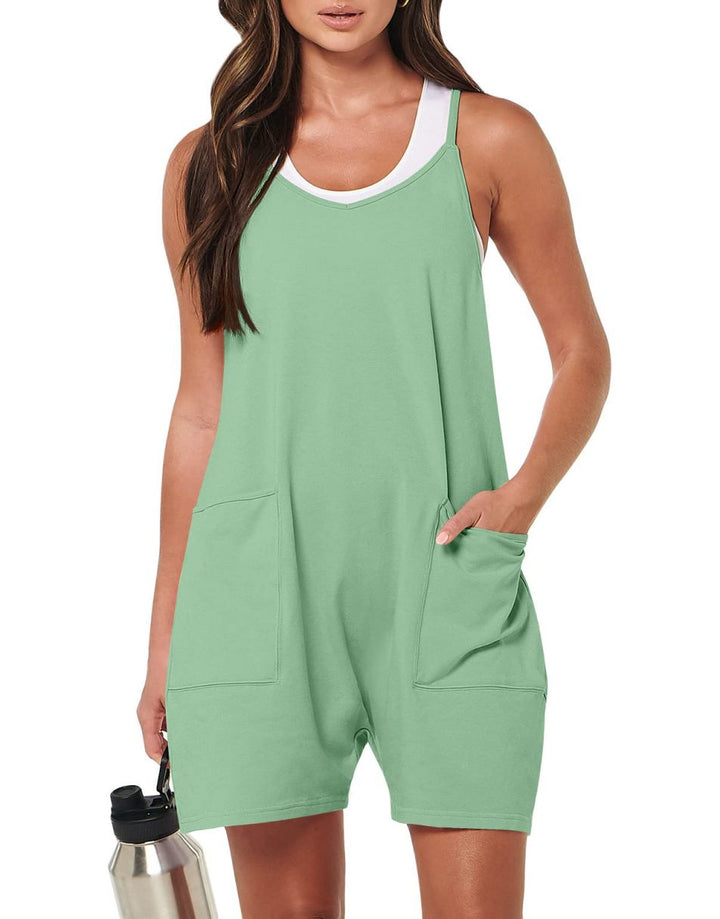 Anrabess Casual Rompers Loose Spaghetti Strap Shorts Jumpsuit with Pockets