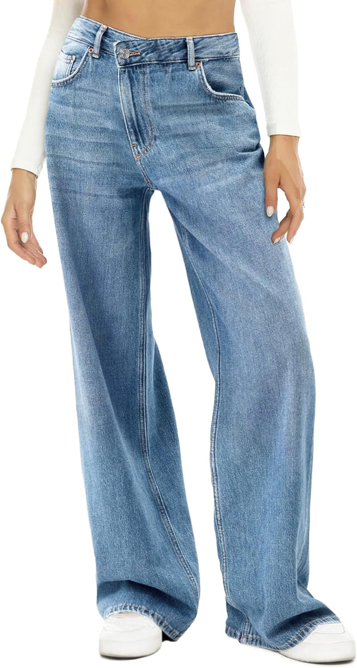 HDLTE Women Wide Leg Jeans High Waist Baggy Jeans Loose Boyfriend Jeans Denim Pants Y2K