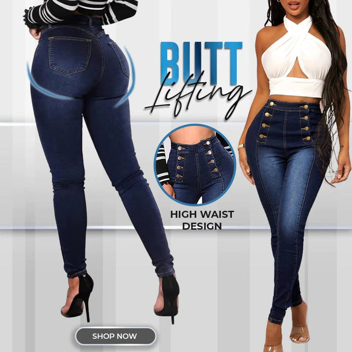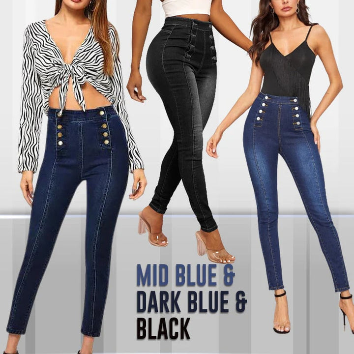 š„Double Breasted High Waist Skinny Jeans