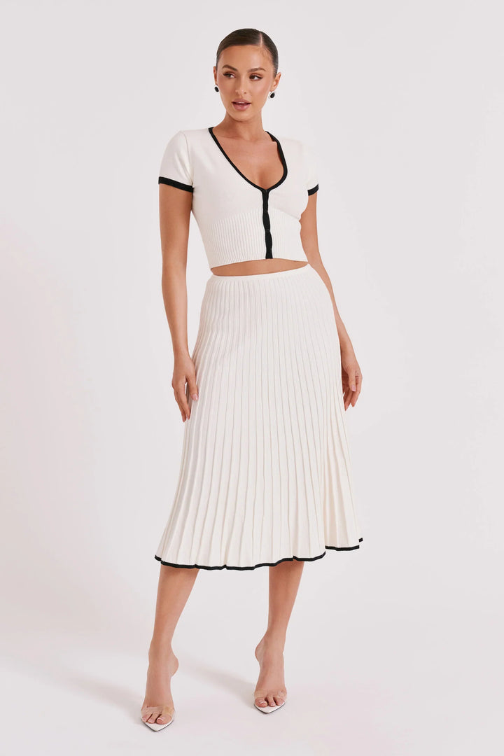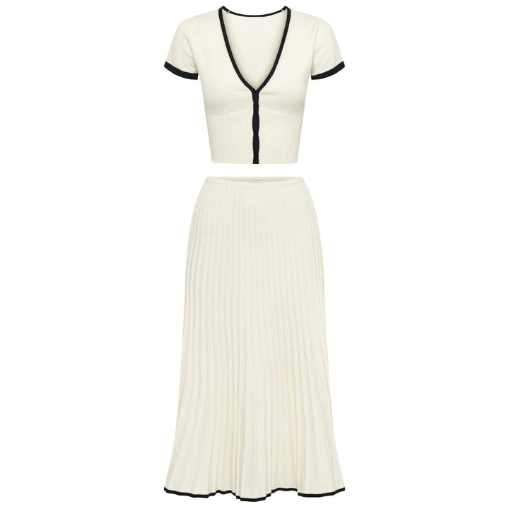 This JOLENE Knit Top And Midi Skirt Set features a soft knit fabric that offers a bodycon stretch and a ribbed bodice with hem detail.