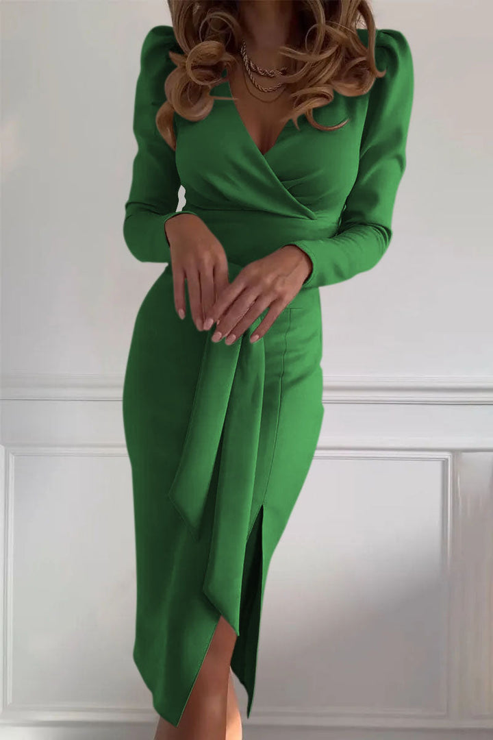 Elevate Your Style with Our Women's Solid Color V-neck Tight Dress